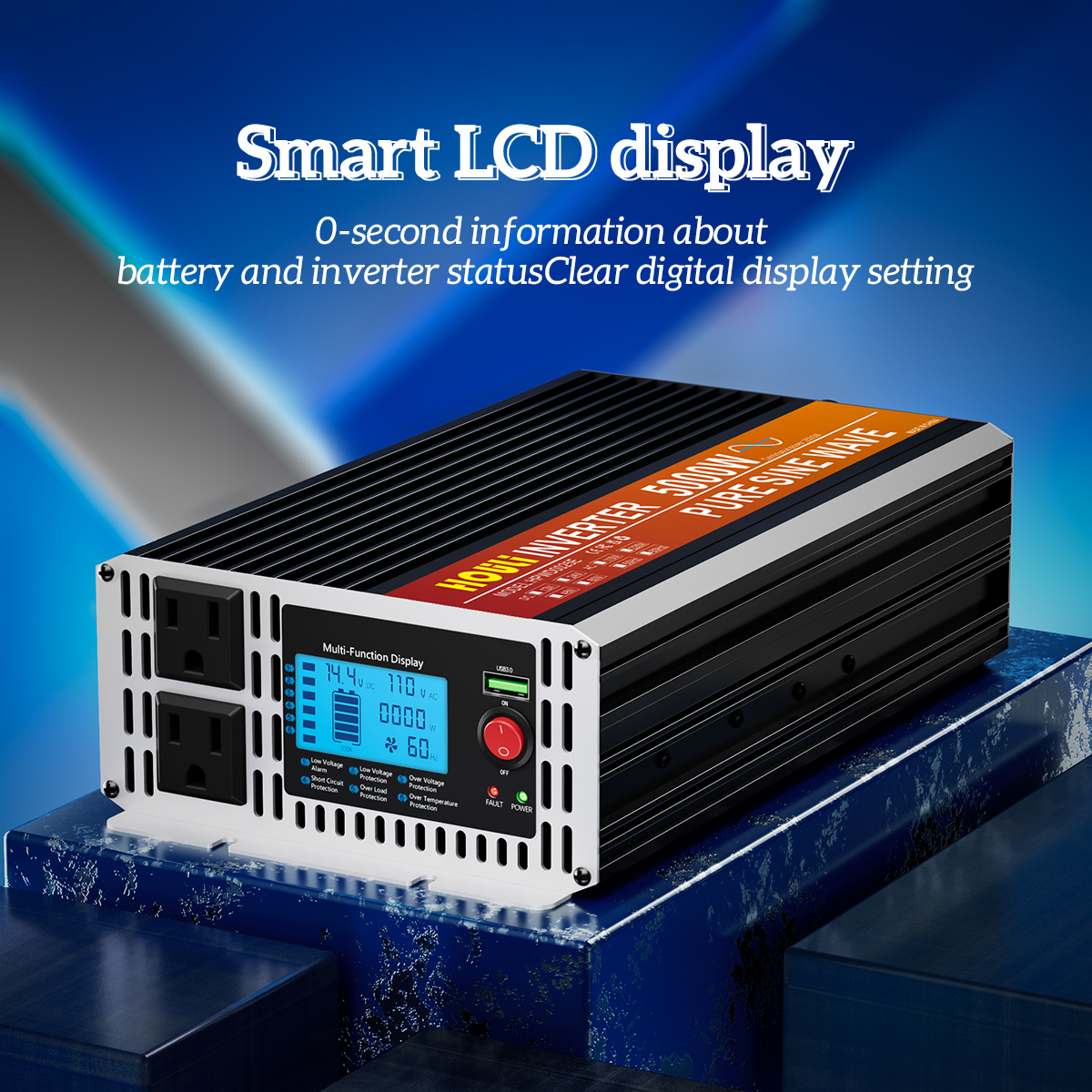 Home > 🇺🇸 USA Warehouse (Fast Ship) > 2000W-5000W Power Inverter, 12V/24V to 110V/120V DC to AC, with LCD display, remote control, 2 AC sockets and 1 x 3.1A USB car adapter.